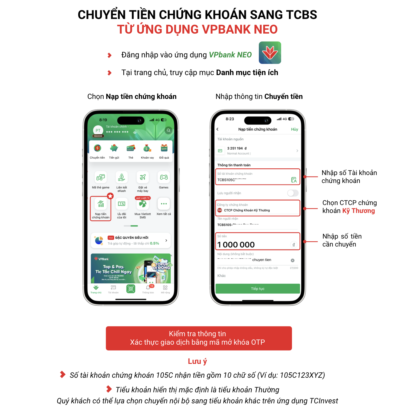 1. Hướng dẫn chuyển tiền vào tài khoản TCBS